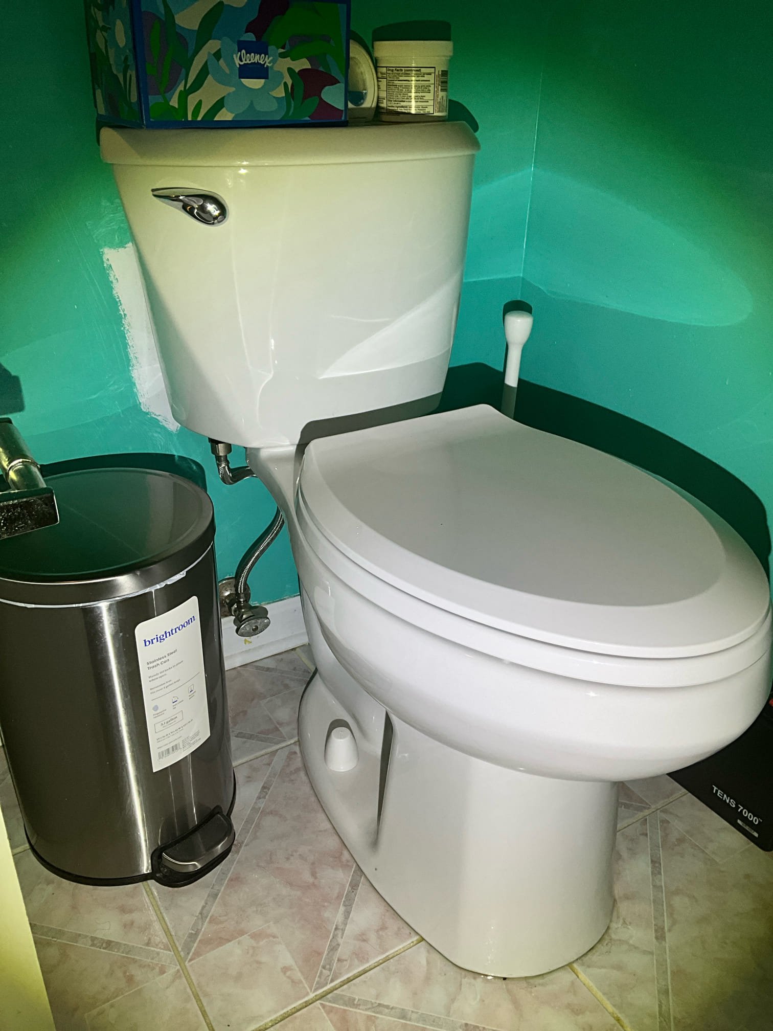 Call for toilet running constantly. Arrived and met with Noor. She states that the toilet has been running constantly for a while, and they’ve been using the shut off valve to stop it from running. I inspected the toilet and found several components damaged or failing. The fill valve float was broken and missing, and the fill valve wouldn’t shut water off. The flapper and flush valve were both letting water pass in to the toilet. The mount gaskets were disintegrating. The handle was broken. We checked the pressure on the home and noted it at al ost 80psi. The pressure regulating valve is approximately ten years old, and has been adjusted all the way up. Thermal expansion tank bladder intact. No signs of water pressure damage at this time. I did discuss concerns with the water pressure, and what to watch out for. Today Noor elected to rebuild the toilet on the main floor. We removed the tank, replaced all components and reinstalled. We also replaced the supply line with a steel b