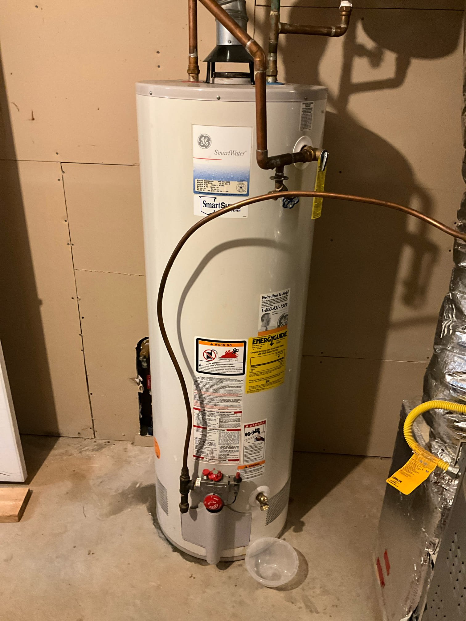 Came out today to replace the 50 gal nat gas water heater in garage. We took off old stand, and sat new unit on ground in a drain pan per code. We replaced the old ball valve shutoff with new ball valve, replaced the thermal expansion tank with new properly supported thermal expansion tank. Also replaced the gas fittings and installed proper coated gas flex. We also replaced the old 3/4” pressure reducing valve on the main water line coming into home and feeding the rest of the home. Tested all connections, no issue and water heater is running as it should be. 6 yr manufacturer warranty 2 yr parts and labor on water heater 1 yr parts and labor warranty on pressure reducing valve Water heater inspection scheduled for next Tuesday 12/23/25 $300 credit added to account.